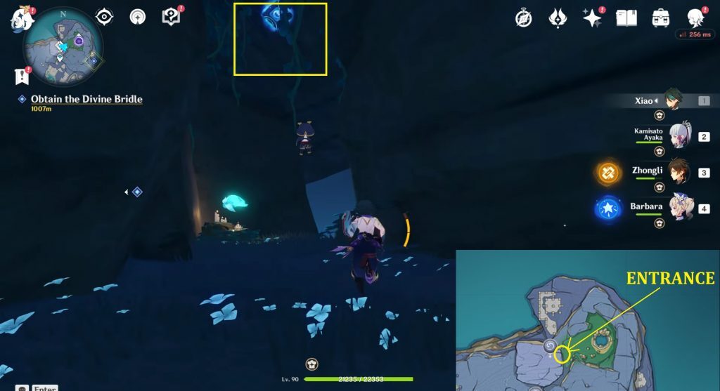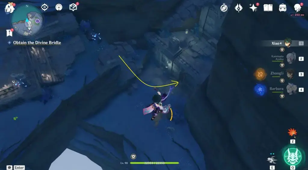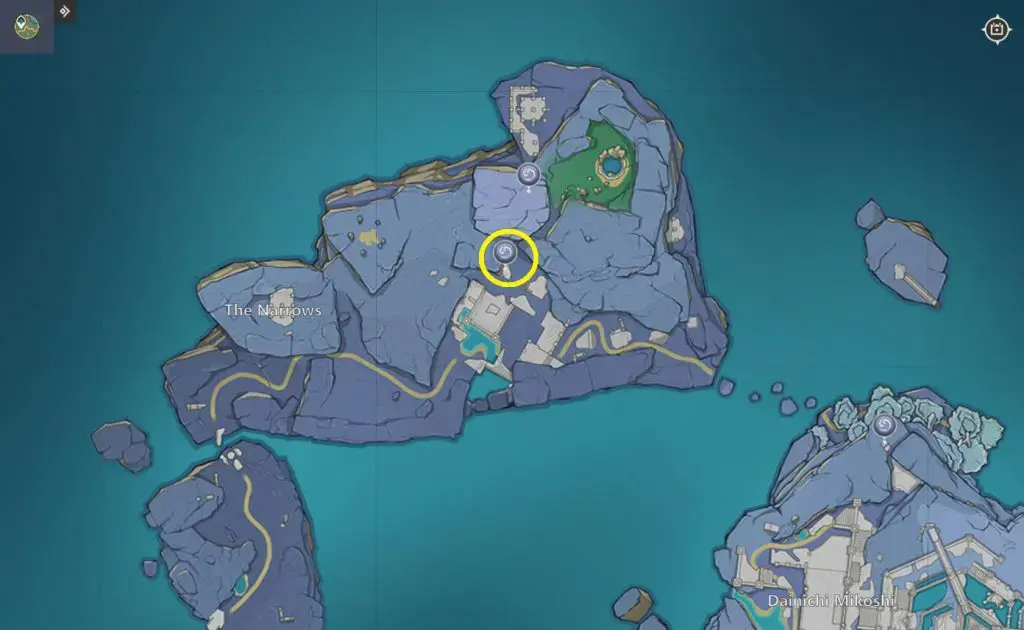 엔카노미야(연하궁) 협곡 모든 15개 건문(열쇠) 위치, 텔레포트 웨이포인트에서 서쪽으로 향하여 표시된 위치에 낙하하십시오. 키 건문(열쇠)(Key Sigil)은 힐리추럴 적으로스(Hilichurl 적으로스) 근처에