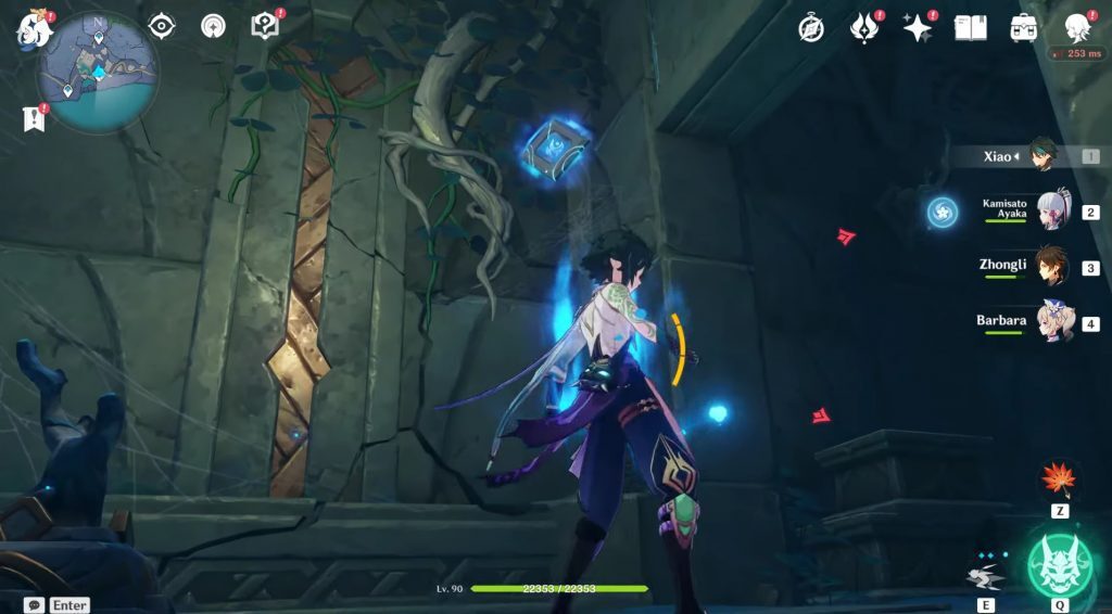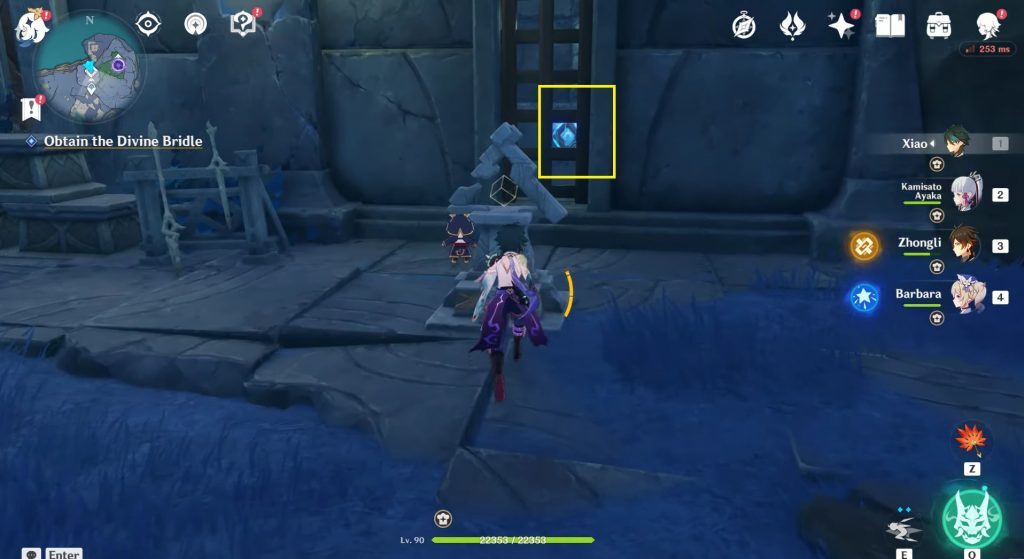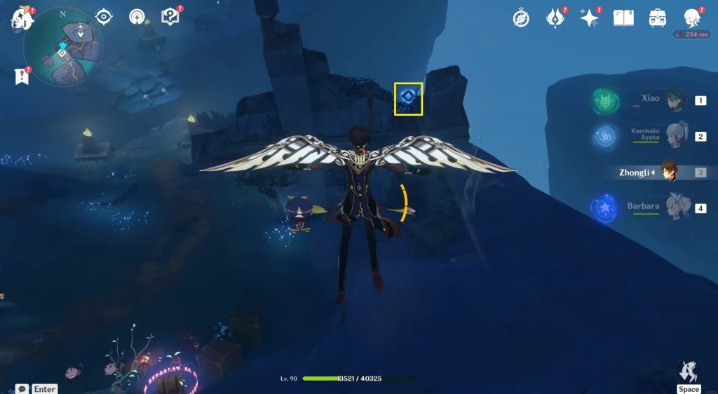 엔카노미야(연하궁) 협곡 모든 15개 건문(열쇠) 위치, 텔레포트 웨이포인트에서 서쪽으로 향하여 표시된 위치에 낙하하십시오. 키 건문(열쇠)(Key Sigil)은 힐리추럴 적으로스(Hilichurl 적으로스) 근처에