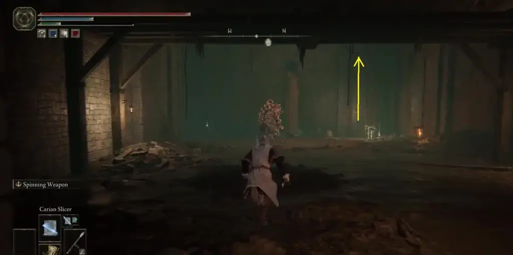 게이트를 열고 선형 경로로 진행하십시오.얼마 안 있으면 큰 홀에 다다를 것입니다. 이 홀의 왼쪽에는 '그레이스의 지하 길가'가 있는 작은 방이 있습니다. 이 홀의 왼쪽 모퉁이 근처에 아래와 같이 아래로 떨어질 수 있는 작은 구멍이 보일 것입니다.