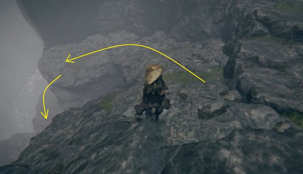 녹론의 입구는 미스트우드 폐허 근처에 있습니다. 아래 그림에 표시된 위치로 이동하십시오. 거기서부터 아래 두 번째 그림과 같이 바위를 타고 내려가면 바닥이 나올 때까지 오르기 시작합니다.
