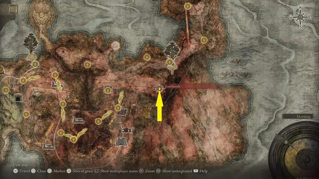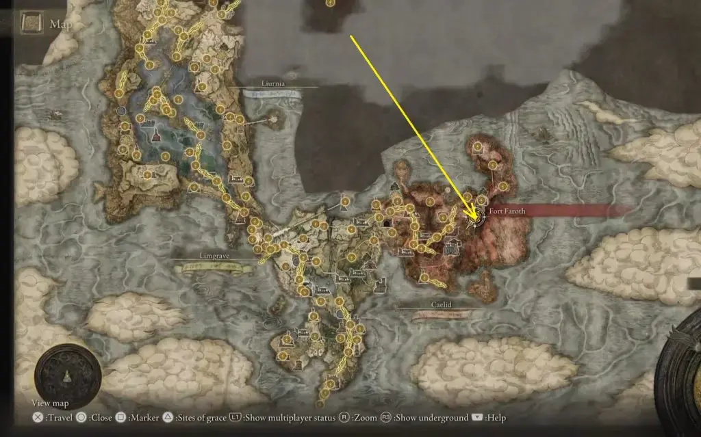 Right Decctus Medalion은 아래 그림에 표시된 위치의 Caelid에 있는 Fort Faroth 안에 있습니다.