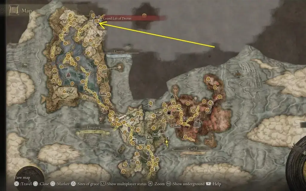 엘든링 덱투스(Decctus) 그랜드 리프트 활성화 방법: 메달리온 위치, 레프트 덱투스 메달리온은 아래 그림에 표시된 위치의 림그레이브 남동쪽에 있는 포트 하이트 안에 있습니다.