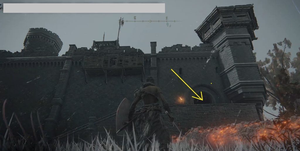 요새의 입구는 아래와 같이 남쪽에 있습니다. 안뜰에 적을 몇 명 찾을 수 있을 거야충분히 빠르면 뜰의 적들은 모두 쉽게 건너뛸 수 있습니다.