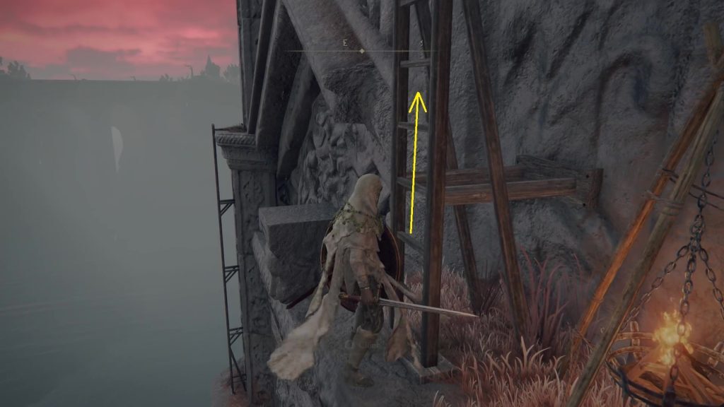 자, 왼쪽의 아치 위로 뛰어올라 다음 선창으로 가십시오.그리고 아래 그림과 같이 사닥다리가 달린 선반에 도달하기 위해 아치를 하나 더 뛰어넘는다.이 사다리를 타고 탑으로 들어가라.