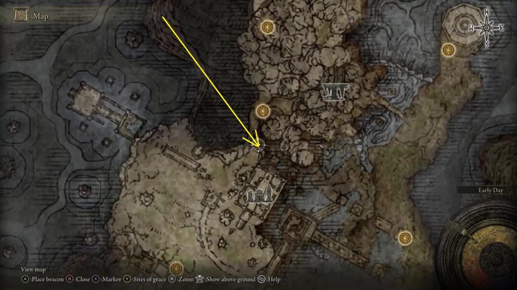 딥루트 딥루트 그레이스(Deeproot Deep Site of Grace)에서 아래 그림과 같이 오른쪽으로 꺾어서 나무뿌리 아래로 걸어가십시오.