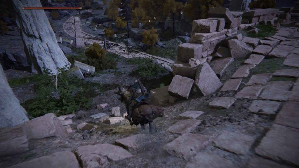 여기서 뛰어내리고 곧장 앞으로 나아가 아래 그림과 같이 녹론영원도시지에 도착합니다.