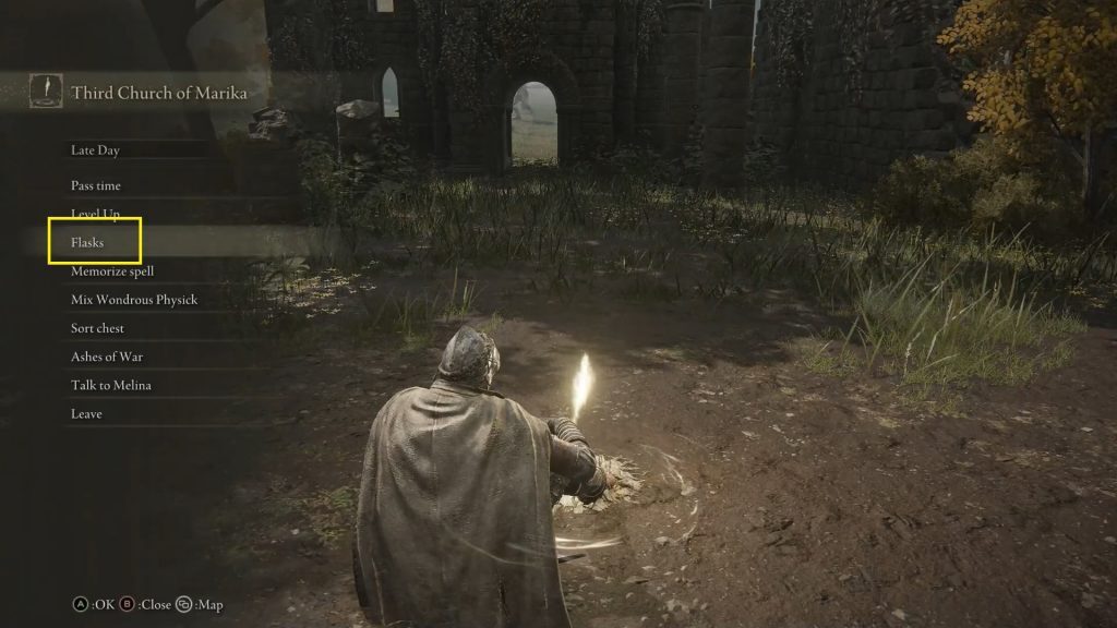 엘든링 림그레이브: 모든 신성한 눈물 위치 & 사용법, 신성한 눈물은 플라스크에 의해 보충되는 건강과 마력의 양을 증가시키기 위해 사용됩니다. 성스러운 눈물이 나면 은총의 현장에 가서 쉬어라.그런 다음 아래 그림과 같이 플라스크로 보충하는 양을 늘리려면 플라스크 옵션을 선택하십시오.