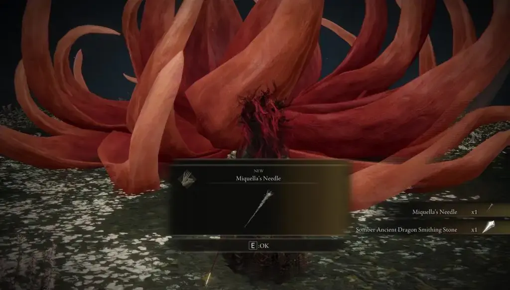 엘든링 밀리센트 모든 엔딩: 퀘스트 & 챌린지 정리 (어시스트), 드래곤로드 플래시두삭스의 방에 있는 미켈라의 바늘을 사용하십시오.그를 물리칠 필요는 없고, 그저 재고품을 열어 놓고 그 바늘로 광란의 명성을 길들일 뿐입니다.이제 당신은 정상적으로 경기를 마칠 수 있고 나쁜 결말을 얻을 수 없을 것입니다.