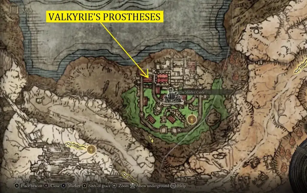 사다리를 오른 후 성의 북서쪽 가장자리를 향해 갑니다. 구석에 있는 방 안으로 들어가 가슴 안쪽을 열어 발키리의 보형물을 얻으십시오.