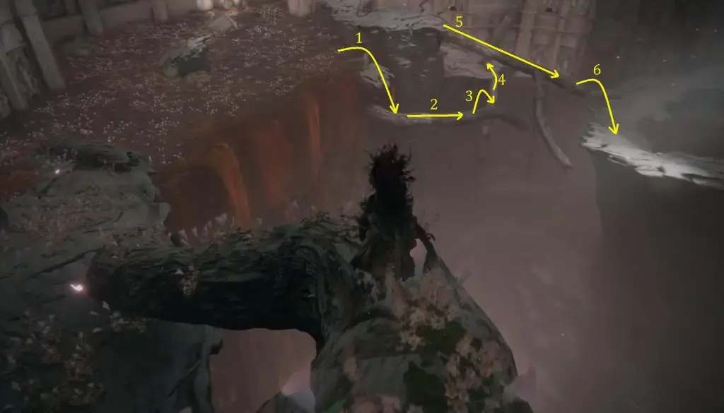 엘파엘 내벽지 오브 그레이스에서 계단을 내려간 다음 왼쪽으로 가는 뿌리에 올라갑니다. 거기서 아래 그림에 나와 있는 길을 따라 내려가십시오.