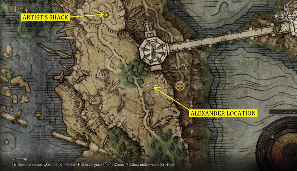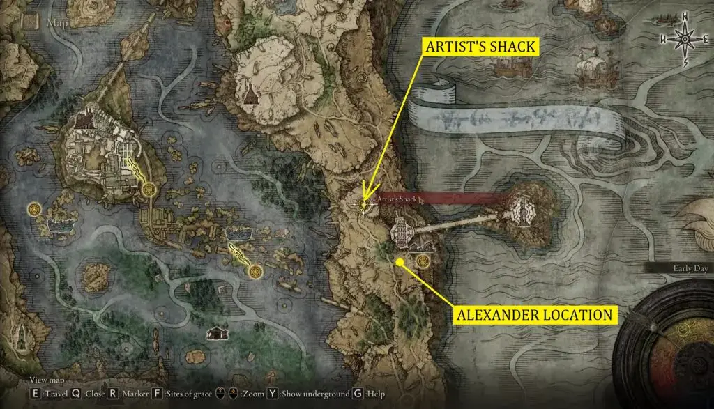 엘든링 알렉산더 자 (Jar) 퀘스트 가이드: 위치 & 엔딩: 다음 위치는 아래와 같이 알투스 고원에 있는세메트워터 터미네이터스그레이스 현장으로 이동하십시오.