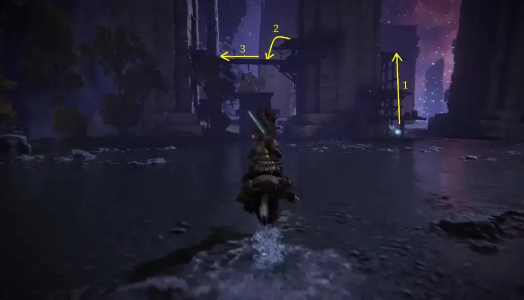 그레이스의용사 제단지에서 북쪽의 문을 통해 아래층으로 내려가십시오.그리고 나서 아래 그림과 같이 왼쪽으로 꺾어서 내려오십시오.