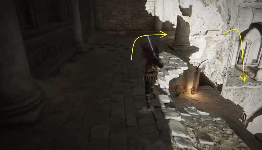 그레이스의용사 제단지에서 북쪽의 문을 통해 아래층으로 내려가십시오.그리고 나서 아래 그림과 같이 왼쪽으로 꺾어서 내려오십시오.
