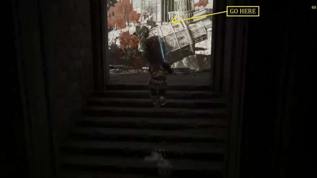 아래 그림과 같이 왼쪽의 계단을 내려가 왼쪽의 창문을 통해 올라갑니다.