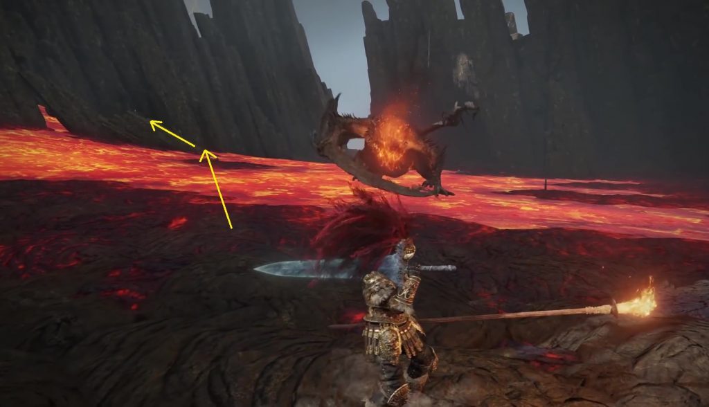 용암밭에서 용을 찾을 수 있을 것입니다.아래 그림과 같이 용을 물리치고 왼쪽 바위에 오르십시오.