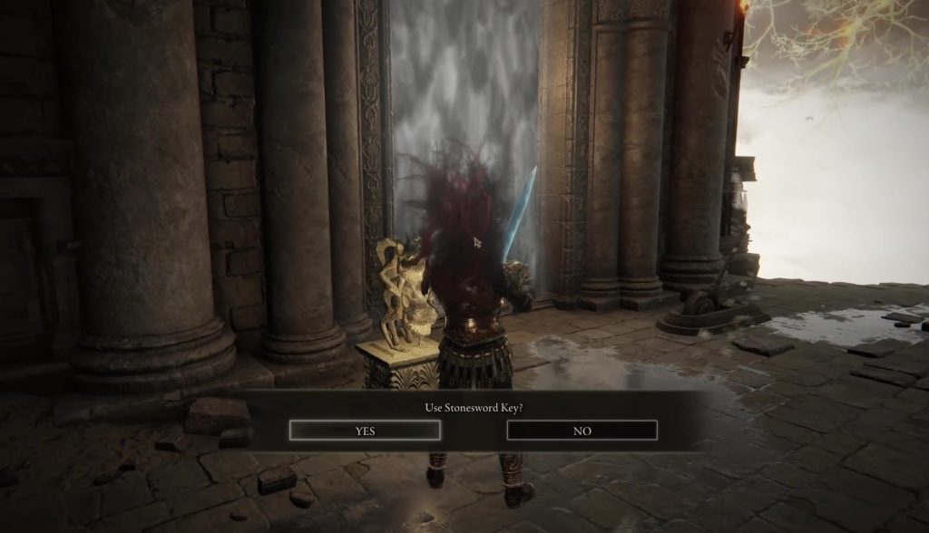 그럼 북쪽으로 계속 가.오솔길 끝에 오른편 나선형 계단을 올라갑니다.그러면 아래와 같이 스톰워드 키 도어를 볼 수 있을 것입니다.이 문을 열면 그 안에서용사 승천장이 발견됩니다.