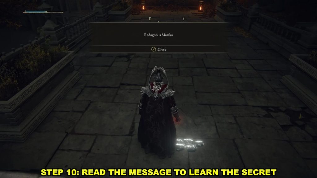 지난번 그를 본 골드마스크에 가서 라다곤이 마리카라고 말하세요.또한 추가 대화를 위해 코린과 대화하십시오.