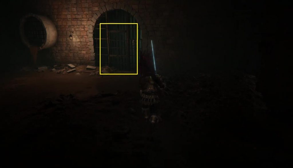 이스트 캐피탈 램파트 오브 그레이스(East Capital Rampart Of Grace)에서 문 밖으로 나간 다음 좌회전하여 직진합니다. 곧 아래와 같이 큰 괴물이 앞에 있는 문에 도달할 것입니다. 여기 오른쪽 발코니에서 뛰어내린 후 아래 그림과 같이 문 안으로 들어가십시오.