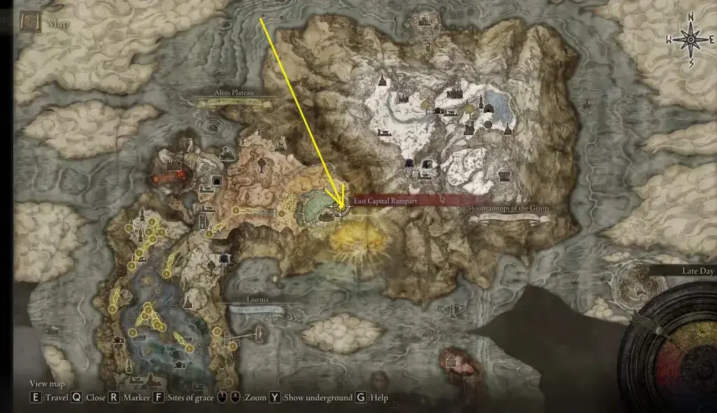 엘든링 Dung Eater 전체 퀘스트: 씨드베드 저주 위치, 갑옷, 엔딩, 아래 사진과 같이 레인델의 수도 람파트 그레이스 유적지에서 '씨드베드 저주'에 이르는 길을 보여 주겠습니다.