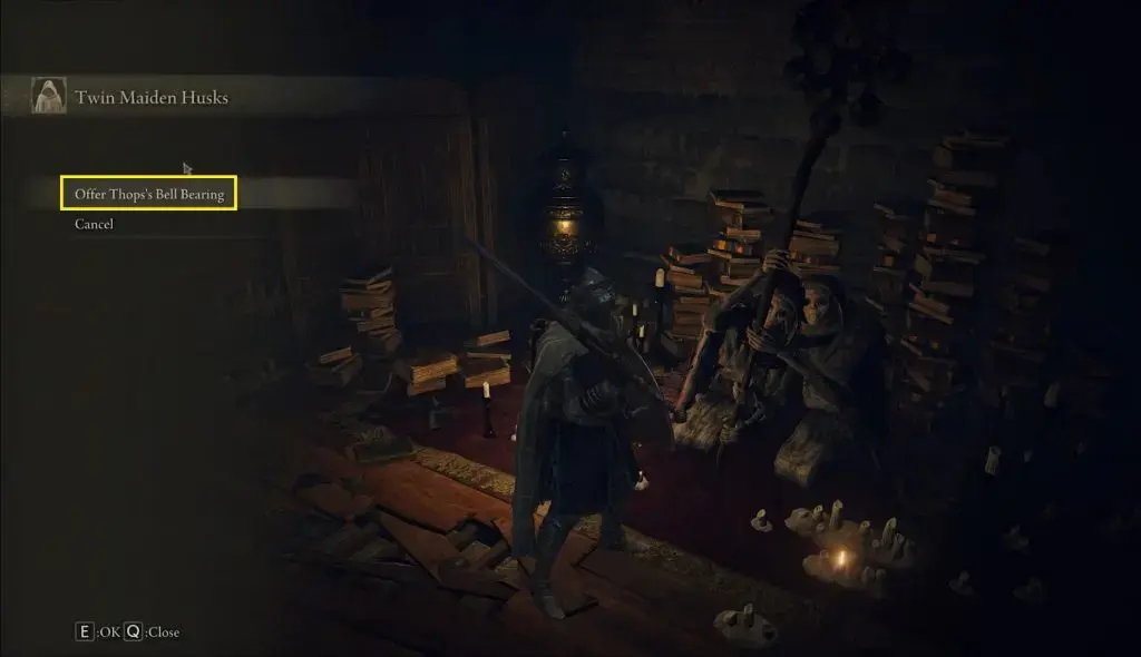 그레이스 스쿨하우스 아카데미 부지 옆의 문을 통해 건물 밖으로 나가십시오. 여기서 홉스의 시체를 찾을 수 있을 것입니다. 시체로부터 3가지 물건을 받게 될 것입니다. Top의 베어링 벨, 아카데미 글린스톤 스태프 & Thops의 배리어 주문.