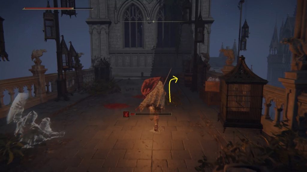 글린스톤 키를 받으려면 이 건물의 들보를 걷고 샹들리에로 뛰어내리십시오.