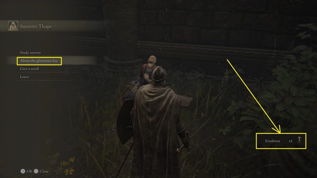 엘든링 Erudition Thorps (에러디션 토푸스) 퀘스트 위치 & 얻는 방법, 이리스의 교회로 돌아가서 글린스톤 열쇠를 마법사 홉스에게 주어라.이렇게 하면, 당신은 변환된 프린지 타워 밀폐된 문을 열 때 필요한 에러디션 제스처를 얻게 될 것입니다. 홉스는 또한 이제 그가 마법 학원에 가서 마술을 배울 것이라고 말할 것입니다.