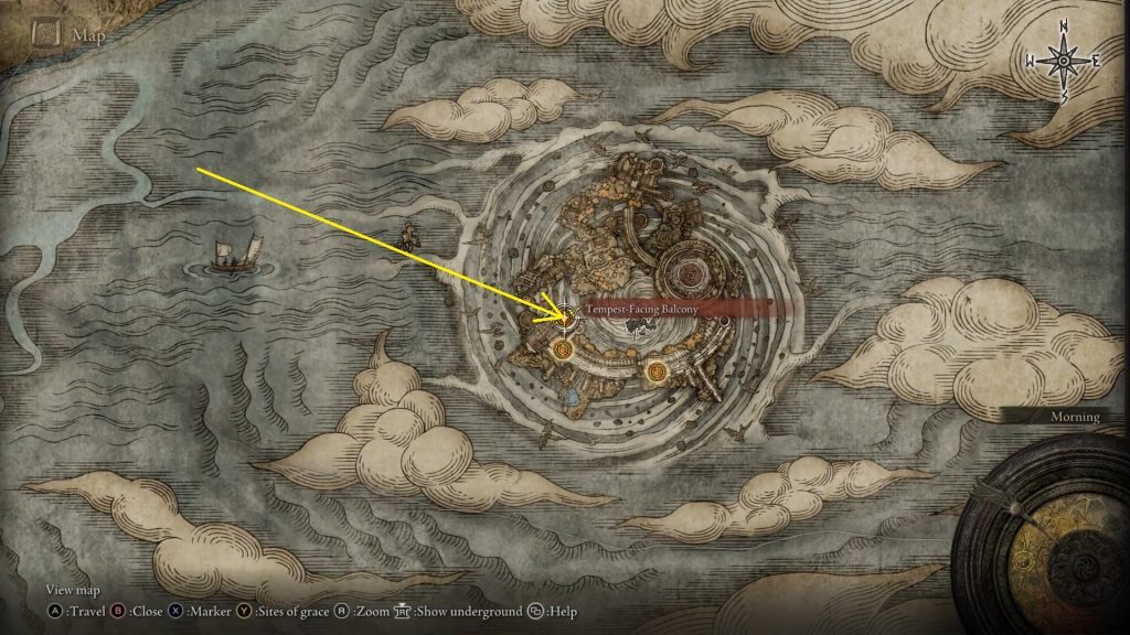 Sullivstone Miner's Bell Bearing[4]은 게임 후반부까지 받을 수 없습니다. 우선 지도 북동쪽 눈밭에 있는 소방대 보스를 물리쳐야 할 것입니다. 이렇게 하면 오른쪽에 있는 작은 섬이 열리게 될 것입니다. 이 섬에서 폭풍우를 마주하는 발코니로 이동하십시오. 당신은 아래의 그림과 같이 이 은혜의 장소 근처에서 Sullivstone Miner's Bell Bearing[4]을 찾을 수 있을 것입니다.