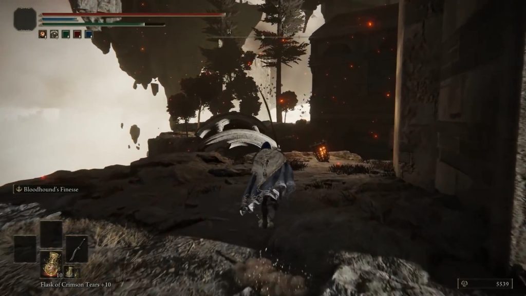 무너지는 파룸 아줄라에서는 아래 그림에 표시된 위치로 가야 합니다. 갓스킨 듀오 보스로부터 북쪽 문에서 나와 드래곤 주물 붉은 번개에 도달할 때까지 계속 전진하라.거기서 우회전하면 아래 사진에 표시된 부분에 닿습니다. 쓰러진 건물을 이용해 오솔길을 건넌 다음 오른쪽 건물로 들어갑니다. 여기 아래의 세 번째 그림과 같이 시체 위에 있는 Sullivstone Miner's Bell Bearing[5]을 볼 수 있습니다.