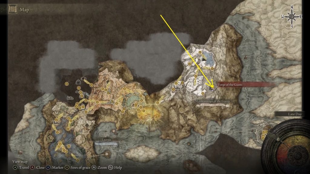 엘든링 Sullim Smithing Stone 1,2,3,4,5,6,7,8,9 | 구입 방법, 경기 후반부로 접어들면 Sullivstone Miner's Bell Bearing[5]을 찾을 수 있습니다. 자이언츠의 Forge를 풀면 아래 그림과 같이 지도 남동쪽 끝에 있는 작은 섬(Crumbing Farum Azula)으로 순간이동할 수 있습니다.