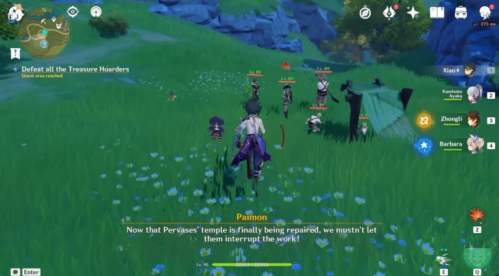 원신 괴상한 점괘 및 후일 만사 평안 월드 퀘스트 공략, 퀘스트가 시작되면, 당신의 첫 번째 목표는 왕핑안과 대화하는 것입니다. 아래 이미지와 같이 테비야트의 리유 하버에서 서쪽으로 왕핑안을 찾을 수 있습니다. 가장 가까운 텔레포트 경유지로 가서 왕핑안과 오래된 오두막 안에서 대화하십시오. 그는 당신에게 보물 보관자로부터 배달 경로를 보호하라고 말할 것입니다.