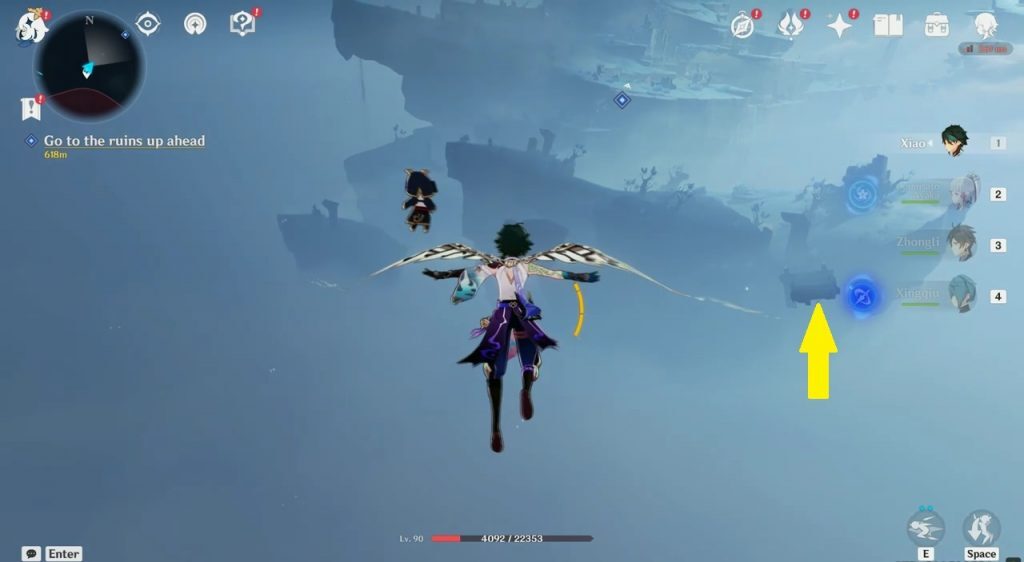 착륙 후 아래 그림과 같이 목표 마커를 향해 남쪽으로 가십시오. 이 목표 표식기 위치에서 다른 위상 게이트를 찾을 수 있습니다. 표시된 위치에 도달하면 목표 마커가 다시 업데이트됩니다. 그런 다음 위상 게이트를 입력하십시오.