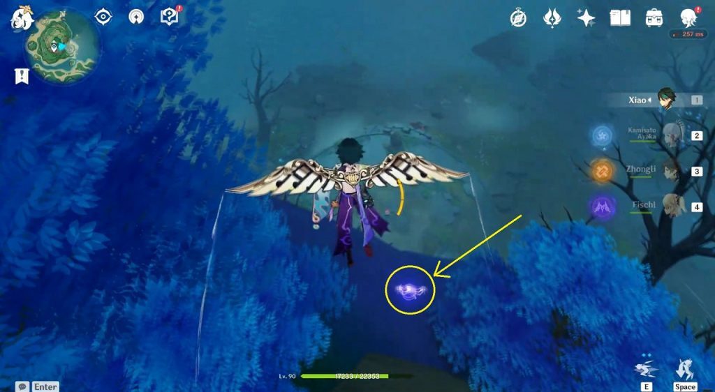 원신 시리코로산 봉우리 벽화 기믹, 퍼즐, 화려한 상자, 시리코로봉 빠른 이동 지점에서 동쪽으로 점프하면 아래와 같이 전기 실리가 내려갈 수 있습니다. 젤리를 오이나 해변에 있는 궁정으로 쫓아갑니다.