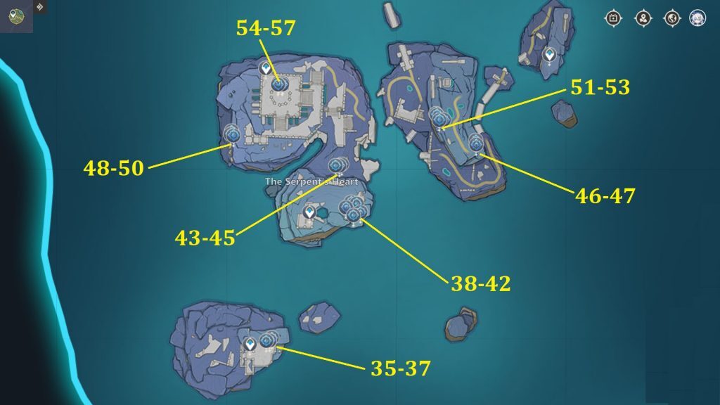 원신 엔카노미야 지역:59개 모든 봉인 위치(뱀의 심장), 더 협곡 지역에는 총 10개의 씰이 있습니다.