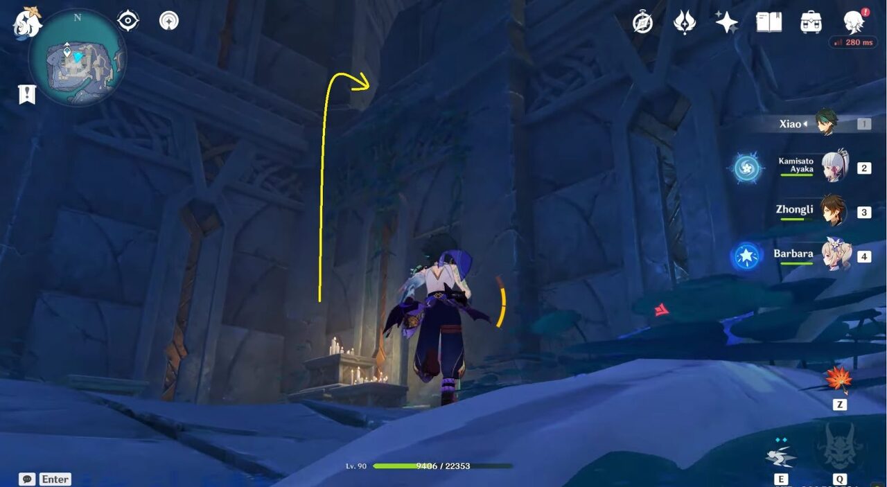 섬의 북서쪽 가장자리에서 뛰어내리면 동굴 입구가 나옵니다. 동굴 안으로 들어가 돌 상자가 있는 촛불 근처에서 우회전합니다. Seals와 함께 다른 지역에 도달하려면 벽을 기어오르십시오.