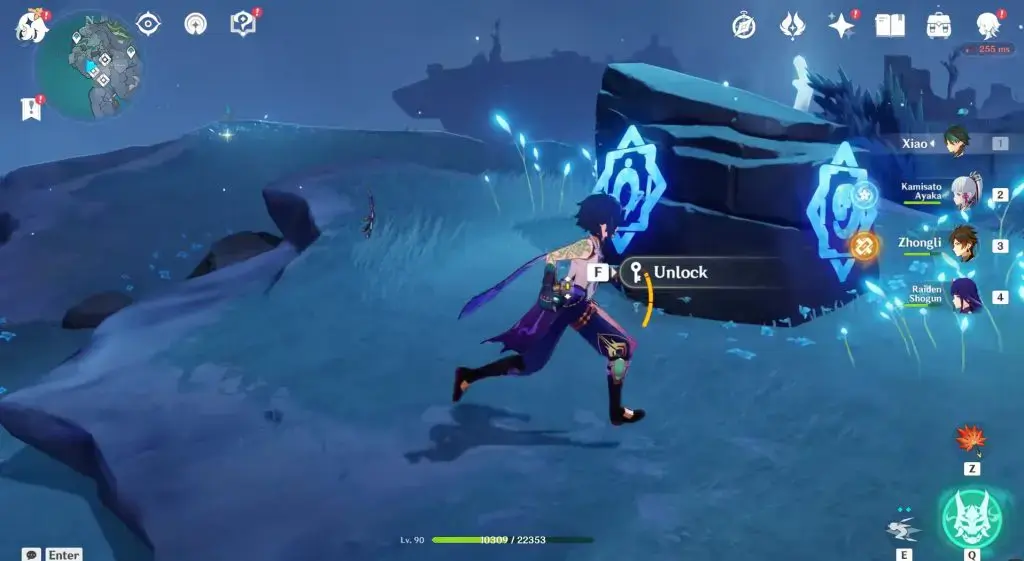 Evernight 모드에서 사용 가능.텔레포트 웨이포인트와 드롭다운에서 북서쪽으로 향합니다. 자물쇠는 돌에 원형으로 배열되어 있습니다.