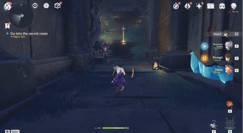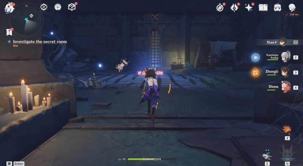 세 개의 Investigate 스팟 모두와 상호 작용한 후 게임은 근처의 메커니즘을 활성화하여 밀실에 들어가라는 메시지를 표시합니다.