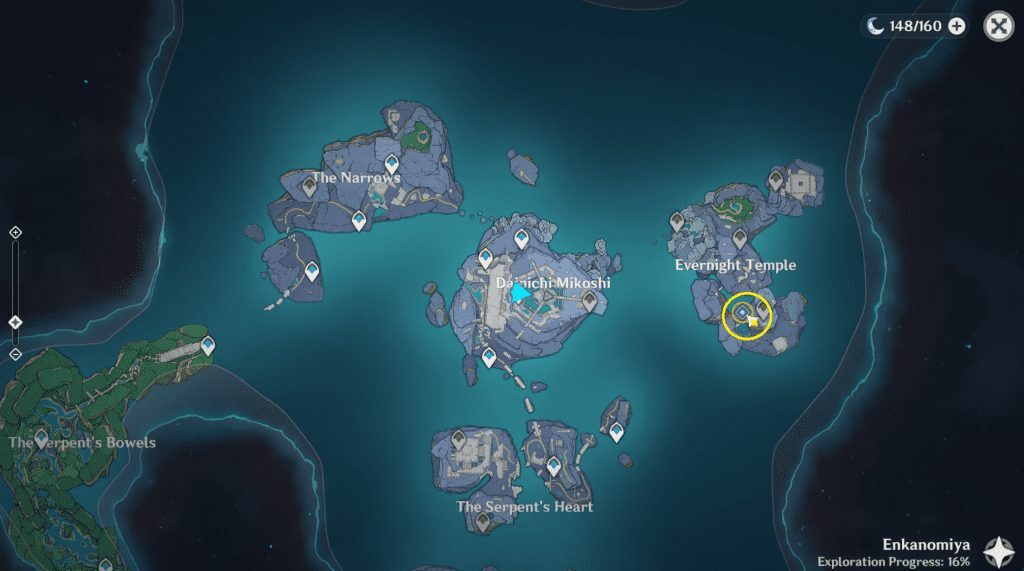 서브퀘스트 시작은 에버나이트 사원으로 가서 배티스말 비삽스의 자취를 따라가야 할 것입니다. 지도에 표시된 위치로 미끄러져 가십시오. 당신은 절벽 벽을 따라 입구를 찾을 것입니다.