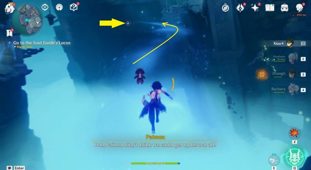 원신 연하궁 월드 임무: 파에톤들은 모두 춤을 춘다 공략, 당신은 이 퀘스트를 에버나이트 사원에서 아래 사진에 표시된 위치에 받을 것입니다. 아래의 두 번째 사진과 같이 퀘스트 기버가 장벽 뒤에 있고 당신은 그와 연락할 수 없을 것입니다.