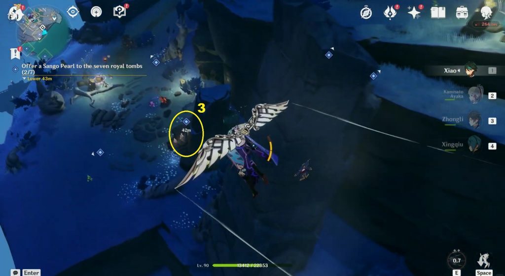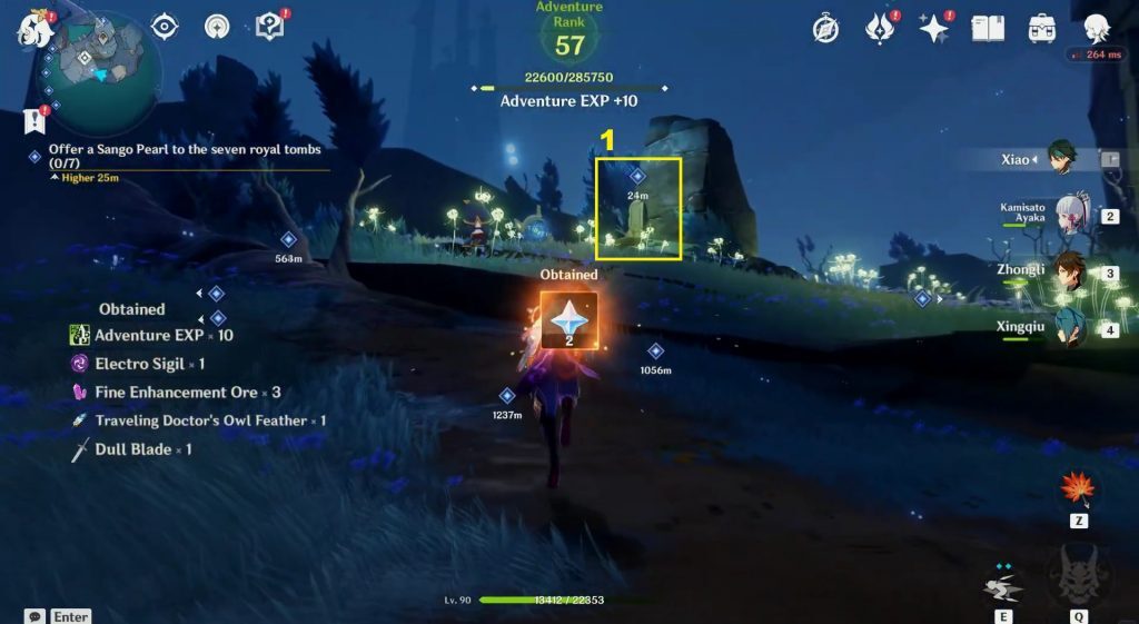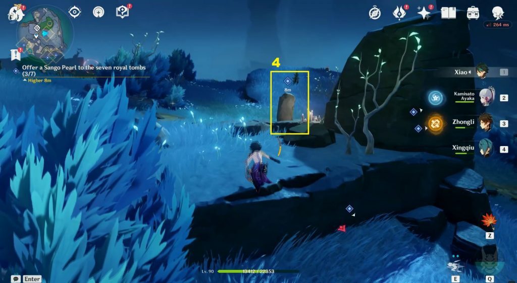 7개의 무덤의 위치는 아래 사진에서 볼 수 있습니다. 이 무덤들은 개방된 지역에 있어서 매우 쉽게 접근할 수 있습니다. 7개의 무덤과 교류하고 그들에게 상고 펄을 제공하여 목적을 달성하십시오.