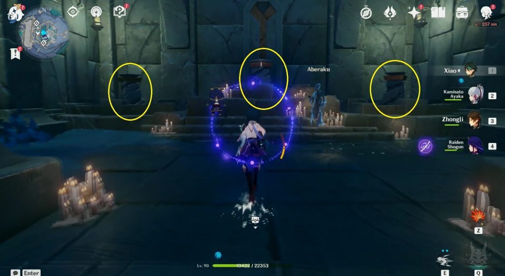 일단 신전의 세 가지 제물을 손에 넣게 되면, 다이니치 미코시의 아에라쿠 위치로 돌아가라.아래 그림과 같이 세 가지 오퍼링을 Averaaku 뒤의 기둥에 놓으십시오.
