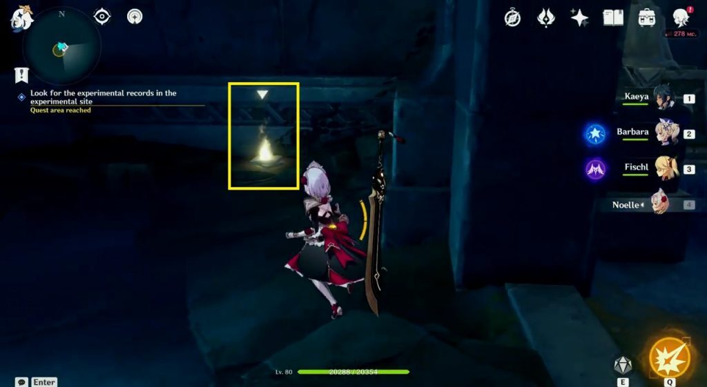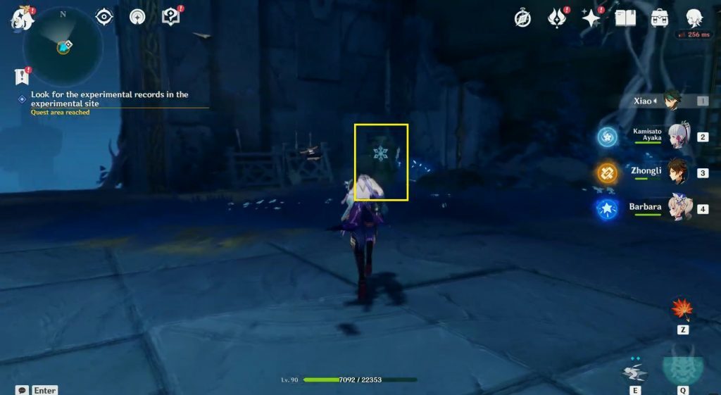 크라이오 공격으로 기둥을 때립니다. 이렇게 하면 성문이 열리고 적이 나올 것입니다. 적을 물리친 다음, 방안으로 들어가 실험 기록을 줍고 퀘스트를 완료합니다.