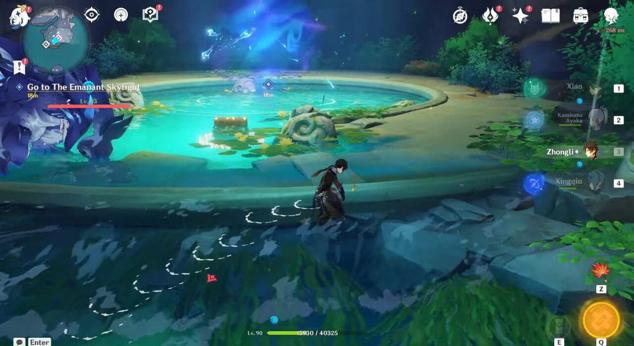 원신 연하궁 월드 퀘스트 - 에레보스(에레보)의 비밀: 3대 무술 시험, 지도 가장자리를 따라 있는 이 세 섬은 직접 도달할 수 없고 고스트피쉬 포털을 통해서만 접근할 수 있습니다. 이 고스트피쉬 포탈은 아래 지도에 표시된 물웅덩이에서 찾을 수 있습니다. 가장 가까운 텔레포트 웨이포인트로 이동하여 수영장으로 이동하십시오.