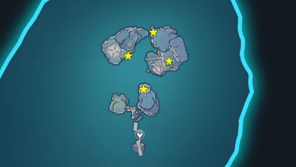 지도 가장자리를 따라 있는 이 세 섬은 직접 도달할 수 없고 고스트피쉬 포털을 통해서만 접근할 수 있습니다. 이 고스트피쉬 포탈은 아래 지도에 표시된 물웅덩이에서 찾을 수 있습니다. 가장 가까운 텔레포트 웨이포인트로 이동하여 수영장으로 이동하십시오.