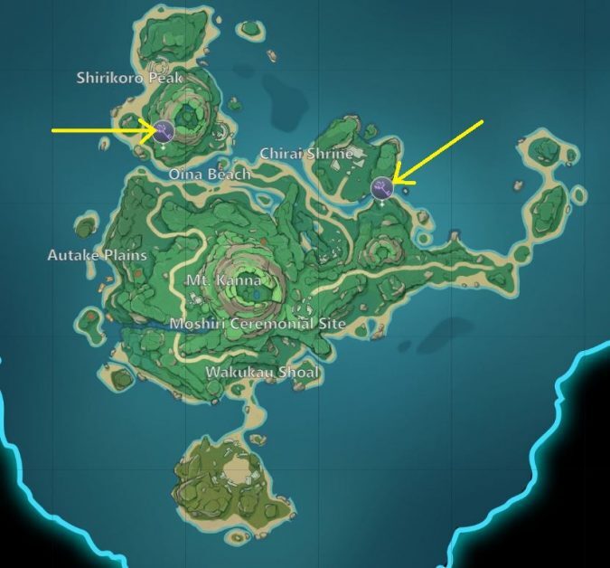 아래 사진과 같은 위치의 츠루미 섬의 두 신사에서 호화로운 보물 상자를 얻을 수 있을 것입니다.