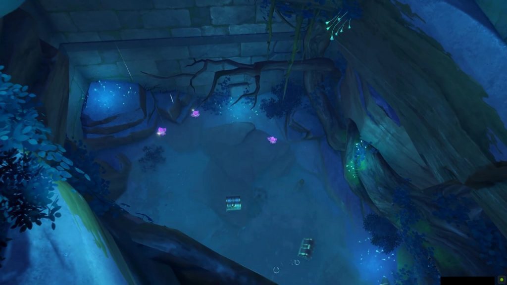 파란 문을 연 후, 방으로 들어가.이 방에서는 화려한 보물 상자를 찾을 수 있을 것입니다. 이 방에는 아래 그림과 같이 스위치와 함께 다른 파란 문이 있을 것입니다. 스위치와 상호 작용하여 물을 완전히 배출하십시오. 이렇게 하면 파란 문도 열릴 것입니다. 물을 빼내면 밑바닥으로 호화로운 보물 상자가 드러났습니다. 지금 열려 있는 파란 문을 지나 뛰어내려가 아래쪽의 호화로운 보물 상자에 닿습니다.
