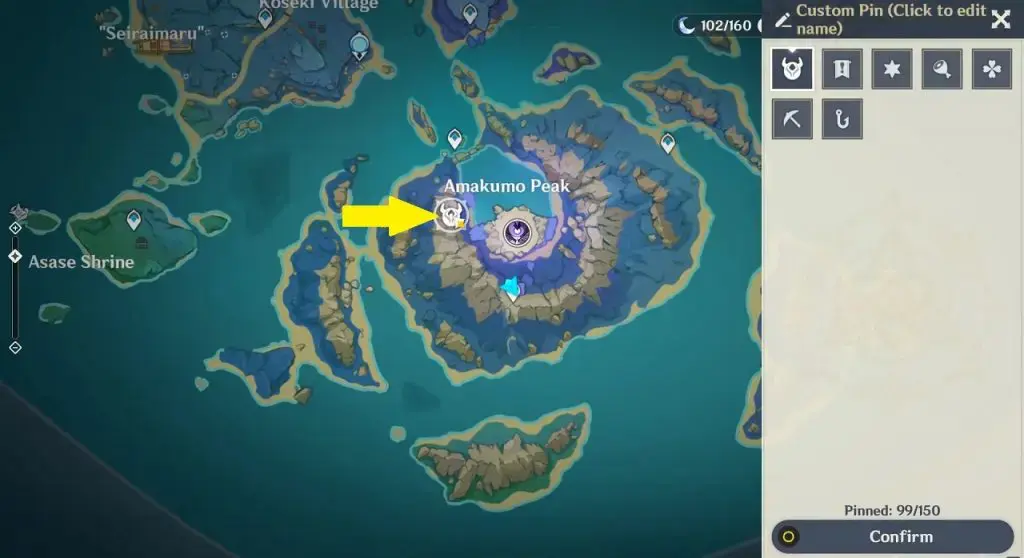 호화로운 보물 상자는 아래 사진과 같이 쿠조우 인캄프먼트 동쪽의 섬과 아마카네 섬 남쪽에 있습니다. 섬의 모든 화분을 깨뜨려야 호화로운 보물 상자가 나타날 것입니다. 아래 두 번째 사진은 섬에 있는 모든 화분들의 위치를 보여줍니다.
