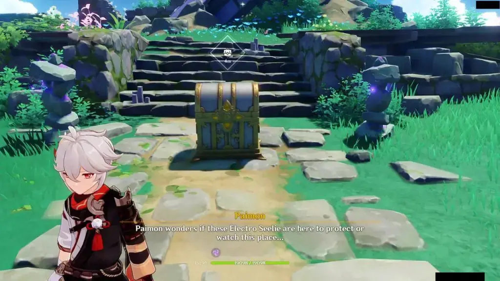 이전 천둥 번개 위치에서 전기 실리를 따라가십시오. 전기 실리는 이 시점부터 매우 빠르게 움직이기 시작할 것이기 때문에 계속 주시하라.계속 따라가면 아래 그림과 같이 곧 목적지에 도착할 것입니다. 이렇게 하면 고급스러운 보물 상자와 소중한 보물 상자 두 개가 드러났습니다.