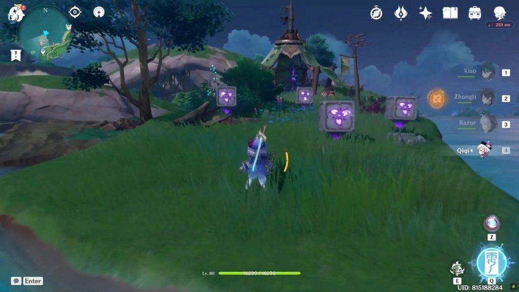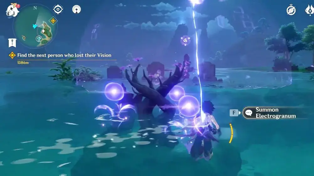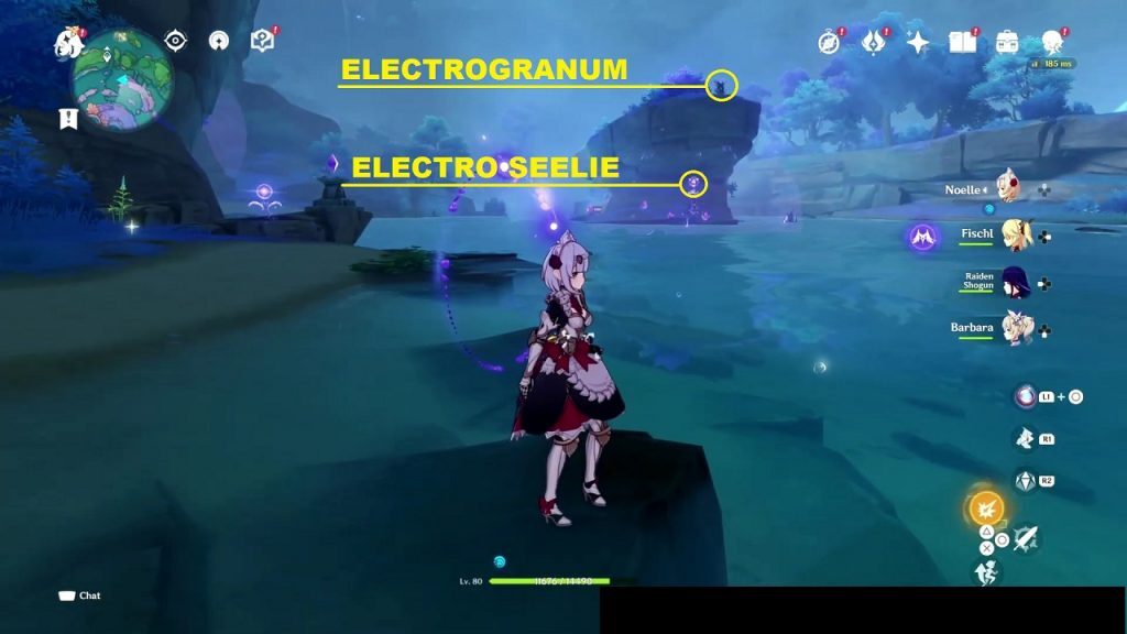 아래 사진과 같이 와타츠미 섬 부르우 마을 서쪽에 있는 일렉트로 실리를 찾을 수 있습니다. 산꼭대기에 일렉트로 실리가 있습니다. 가까이 가면 내려갈 것입니다. 절벽 아래로 뛰어내려 나무 밑에서 전기 실리를 찾아라.전기 실리를 계속 따라가다 보면 시간이 지나면 썬더 장벽 안으로 들어갈 것이고 여기서 회전 스톤 큐브 퍼즐을 풀어야 할 것입니다.