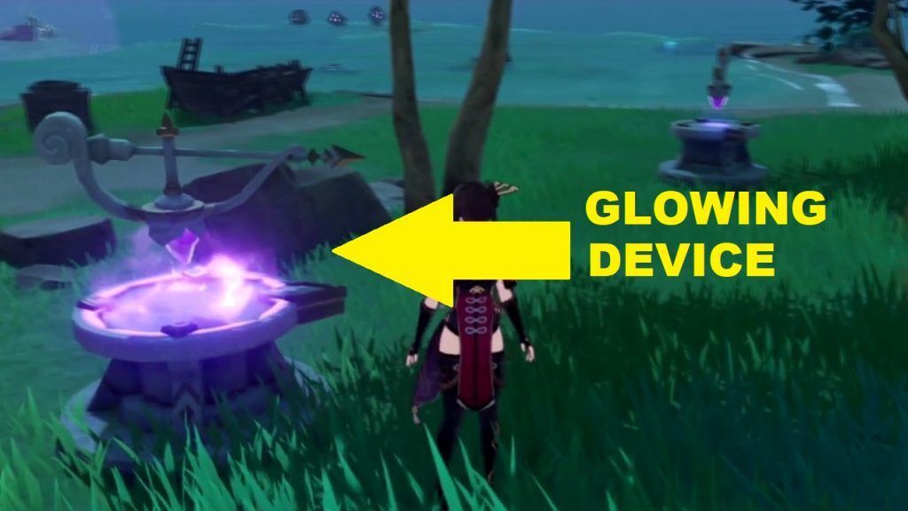 전기로 충전된 후에는 번개 타격 프로브 근처에 가서 나침반이 같은 방향을 가리키고 장치가 빛나기 시작할 때까지 장치 베이스가 가리키는 방향으로 서십시오. 다른 두 장치에 대해서도 동일하게 하십시오. 이 장치는 아주 짧은 시간 동안만 빛을 발할 것이기 때문에 빨리 이것을 해야 합니다. 퍼즐을 완료하려면 세 개의 장치를 모두 동시에 켜야 합니다.