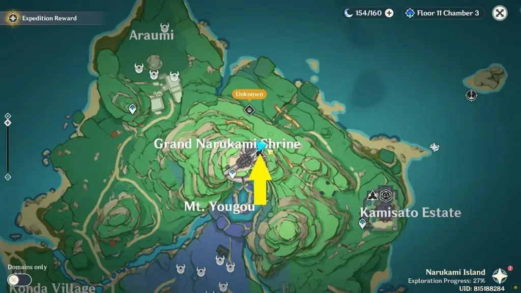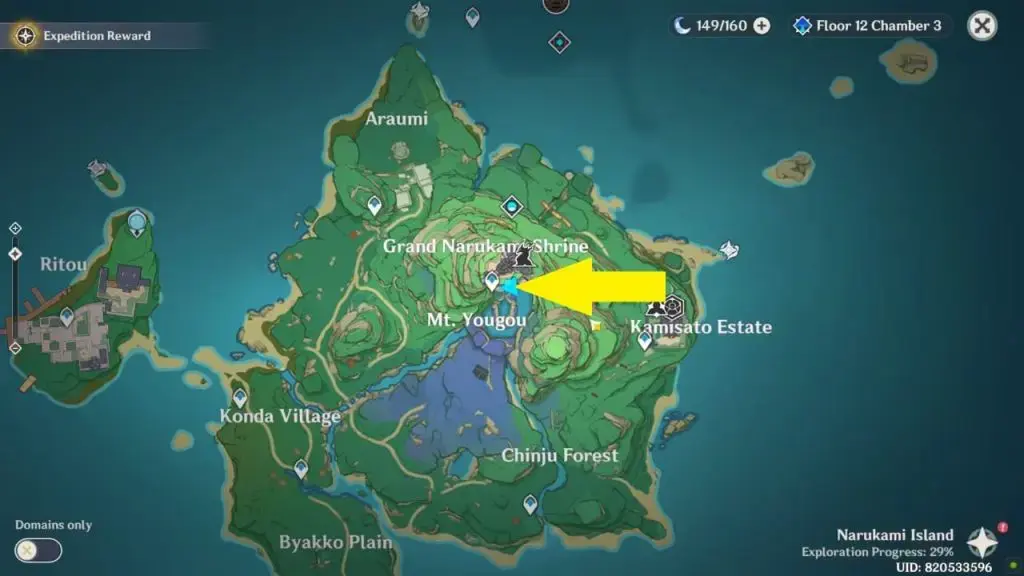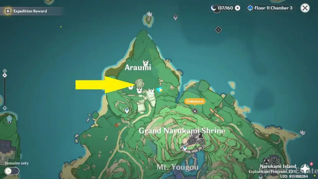 아래 그림과 같이 리투 북동쪽 작은 섬에 있는 나루카미섬의 제2신사가 있습니다. 사당 안쪽에 호화로운 보물 상자를 갖게 될 것입니다. Deep Keys를 얻는 방법을 보려면 여기를 클릭하십시오.
